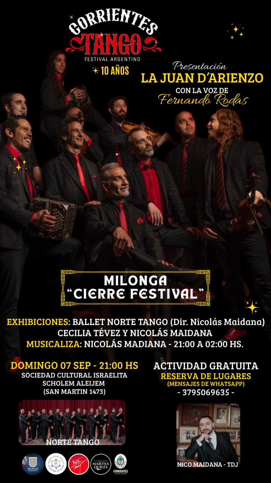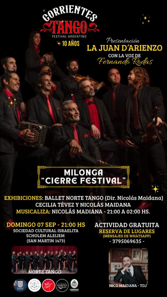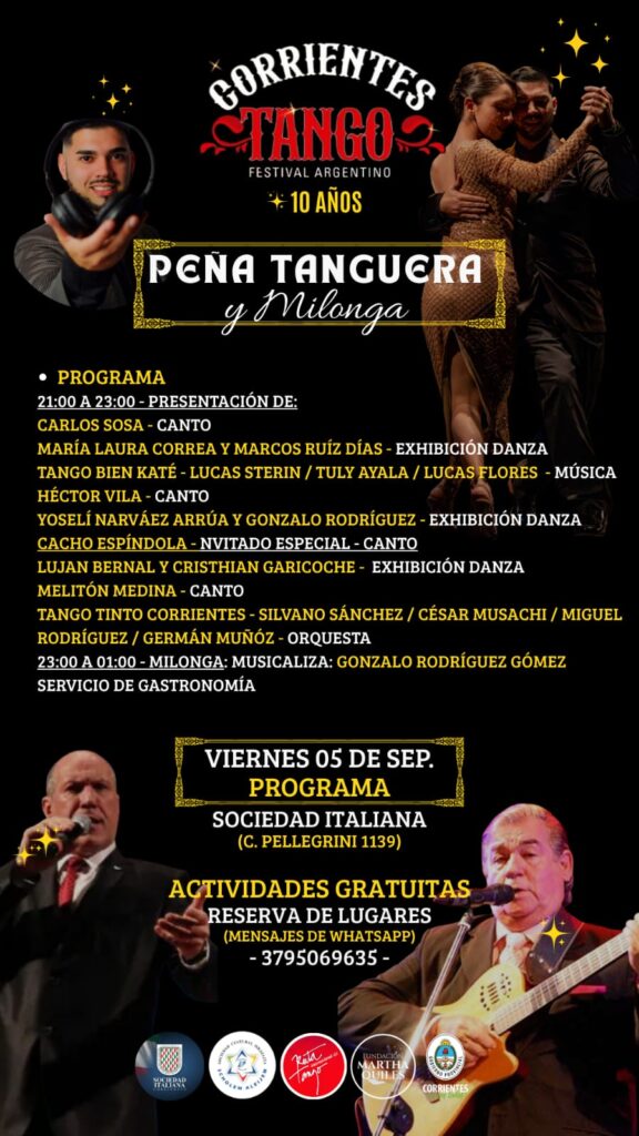 Con el apoyo del Gobierno de la Provincia de Corrientes y la Municipalidad de la ciudad de Corrientes, se presenta la 10º Edición de «Corrientes Tango» Festival Argentino. El mismo tendrá lugar los días 05, 06 y 07 de septiembre con la participación de referentes del género artístico a nivel local, regional y nacional.