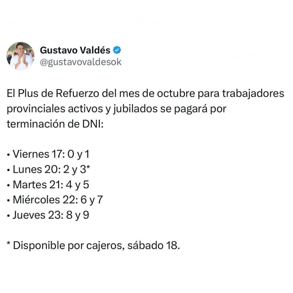 El gobernador Gustavo Valdés adelantó que la liquidación del cronograma del beneficio será entre este