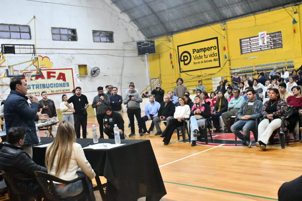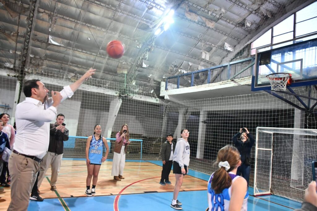 «Uno mira y ve el piso de parquet que dan ganas de seguir haciendo infraestructura, y hay que arreglar el techo, sigamos con eso», indicó el Gobernador y anunció que «que hay que hacer son tribunas móviles, y que puede hacer que el Club sea muy importante».
