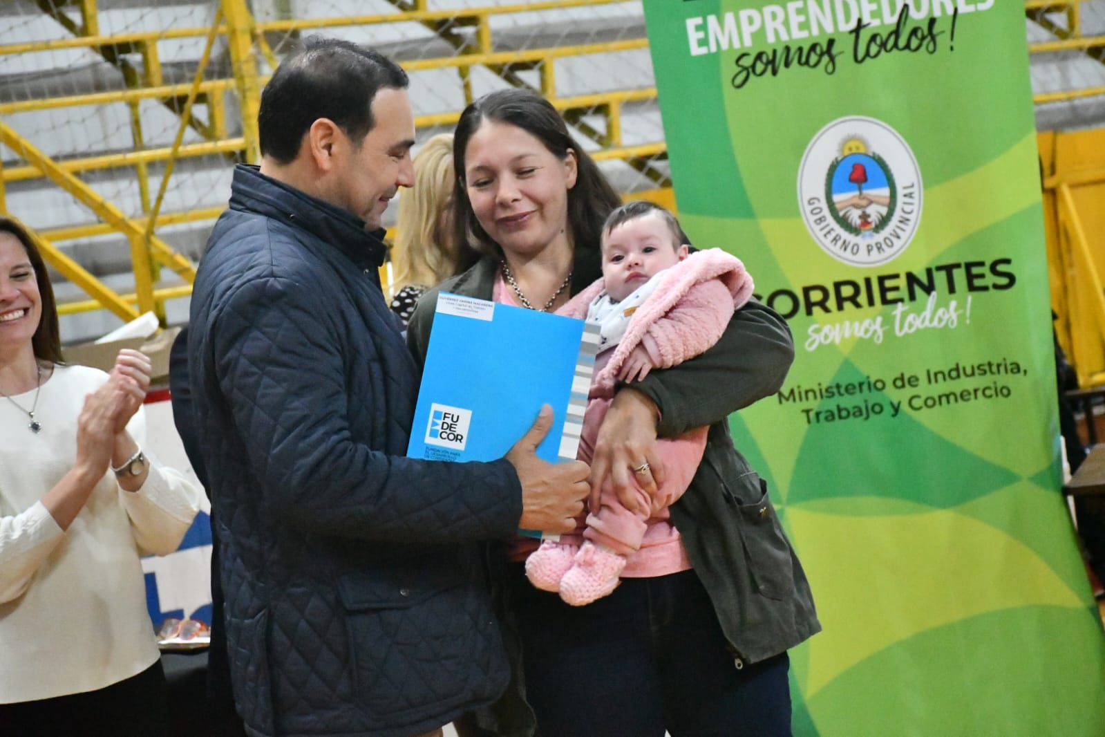 Finalizada la inauguración de la cancha de parquet del Club Curuzú Cuatiá, el Gobernador se dirigió al Club Belgrano para hacer entrega de más de 30 microcréditos, y bienes de capital a 16 emprendedores locales.