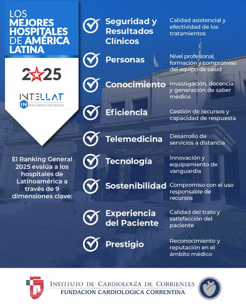 El Instituto de Cardiología de Corrientes (ICC) ha sido distinguido en el Ranking IntelLat 2025 de los mejores hospitales y clínicas de Latinoamérica, alcanzando el puesto N°47 en la clasificación general comparándose con hospitales polivalentes de los mejores centros de los países participantes.