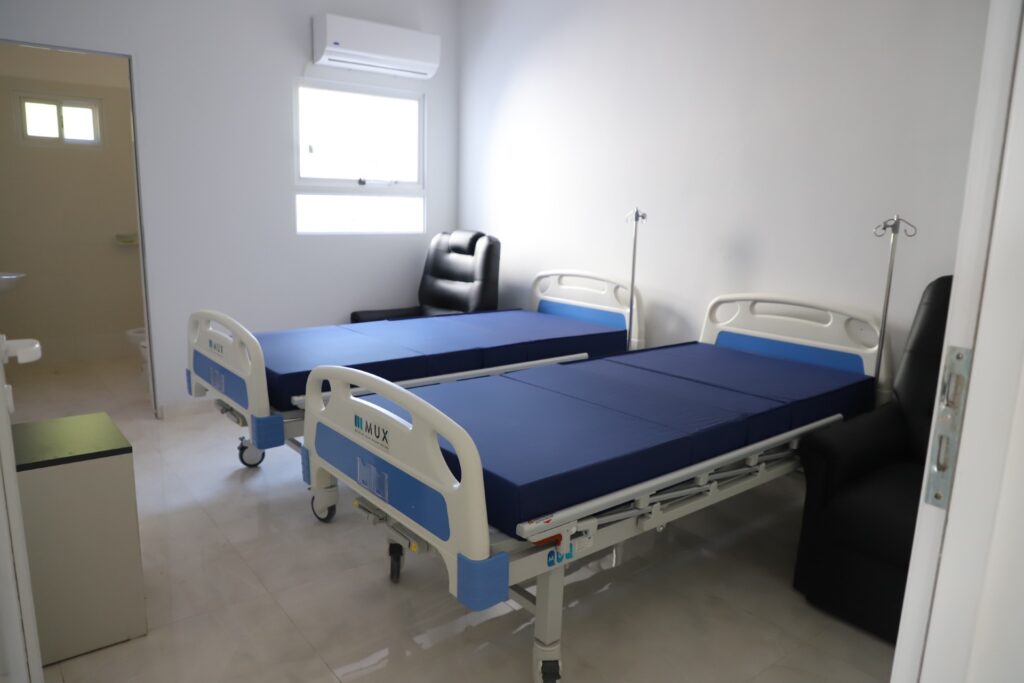 También, la instalación de agua caliente, tanque elevado de agua, veredas perimetrales, iluminación exterior, rejas de seguridad en el frente, cerramientos con tejido en laterales y fondo, construcción de acceso y salida de ambulancia.