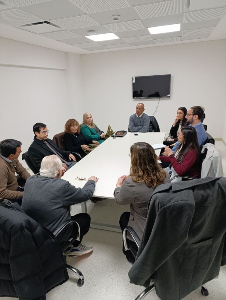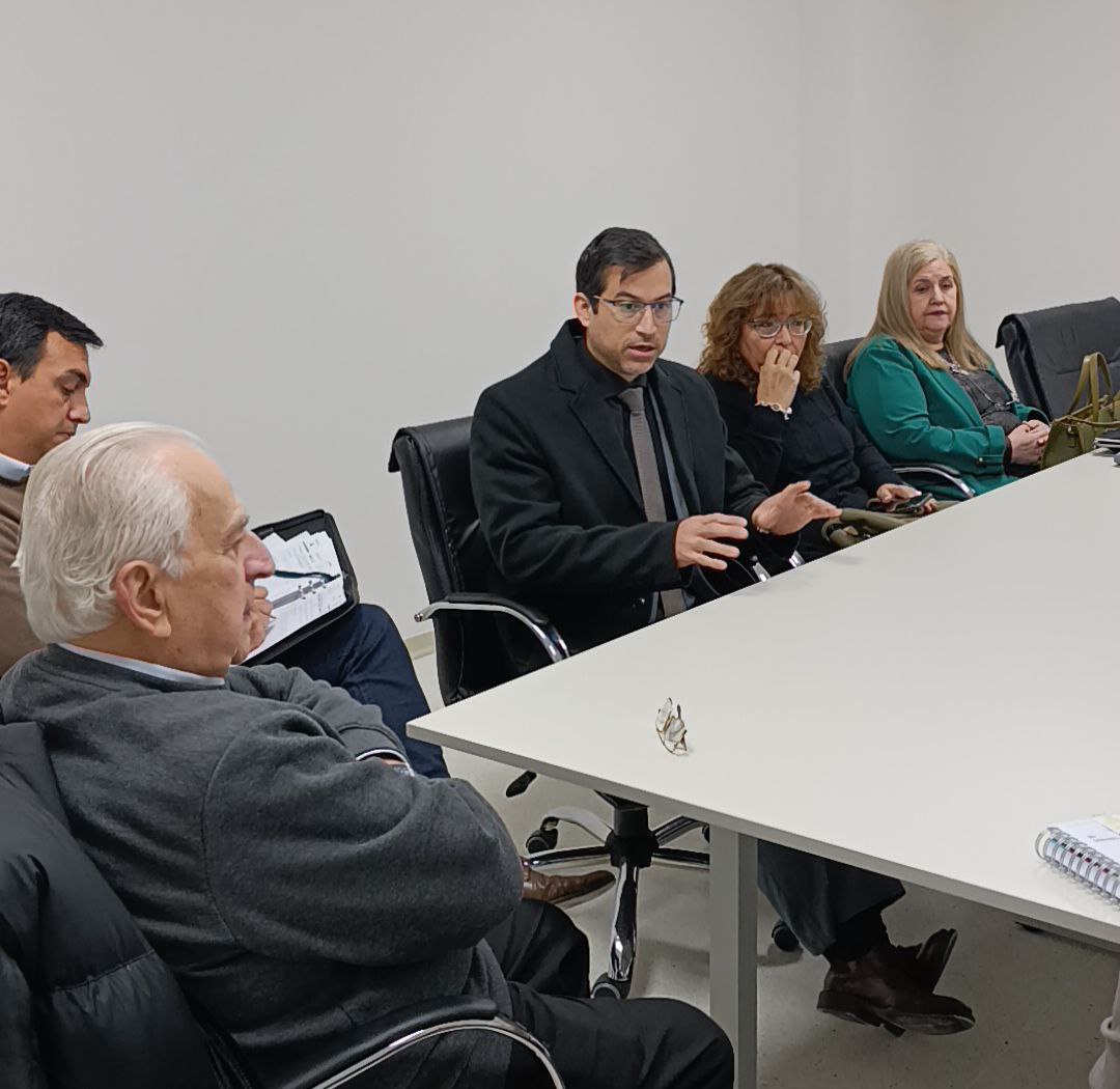 El director General de la Unidad Ejecutora Provincial (UEP), Ariel Vázquez, junto a su equipo técnico visitó la Institución. Allí, fue recibido por el director Ejecutivo, Jorge Raúl Zimerman, la directora Administrativa, Mónica Polischuk, el equipo técnico y el director de Sistemas del Ministerio, Fabián Medina.