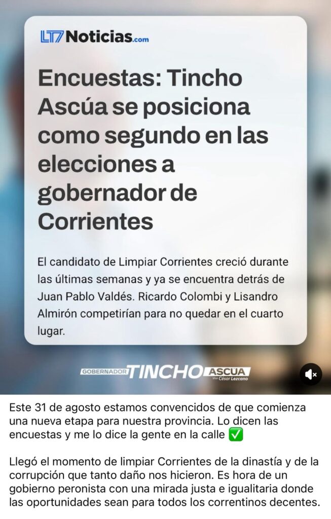 Sin citar las encuestas que tienen todos los frentes políticos que posicionan a Ascúa anteúltimo, agenda ciudadana te va a mostrar una encuesta de un medio que no puede decirse que no sea independiente y que lo ubica anteúltimo con un 9 % de intención de votos, se trata de infoduarte y esta disponible en todas las redes sociales de este medio de noticias, cualquiera puede acceder. Este porcentaje vergonzoso del cual no ha podido despegarse en toda la sucia campaña electoral que llevó adelante y lo hunde cada vez más marca la tendencia irreversible, su suerte está echada y se aproxima a llevar al kirchnerismo a la peor derrota de su historia.