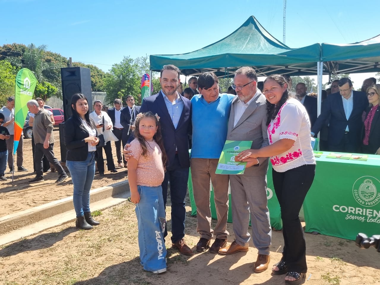 Acompañaron el acto, el gobernador electo, Juan Pablo Valdés, ministros, secretarios y subsecretarios del Gobierno provincial; legisladores; intendentes de localidades vecinas; vecinos y adjudicatarios.
